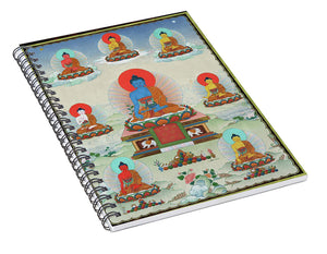 Our spiral notebooks are 6" x 8" in size and include 120 pages which are lined on both sides. The artwork is printed on the front cover which is made of thick paper stock, and the back cover is medium gray in color. The inside of the back cover includes a pocket for storing extra paper and pens.
