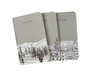 "Our Home" collection of journals from Yatri Supply, printed locally in Kathmandu featuring artwork of the Kathmandu Valley.