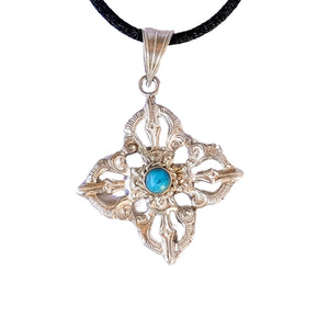 This handcrafted pendant from Nepal features the Double Vajra (Vishvavajra), a traditional symbol representing stability, protection, and the unshakable foundation of truth. The double vajra represents spiritual balance and the union of opposites.