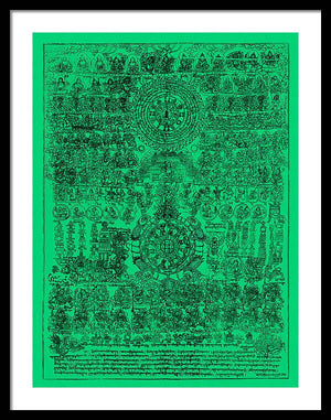 This classic Tibetan image displays the cosmic turtle with the magic square of 9, 8 trigrams and 12 zodiac signs. Traditionally displayed in Tibetan Buddhist homes, above the entrance door as protection for the home and inhabitants as well as used for Tibetan medical divination.