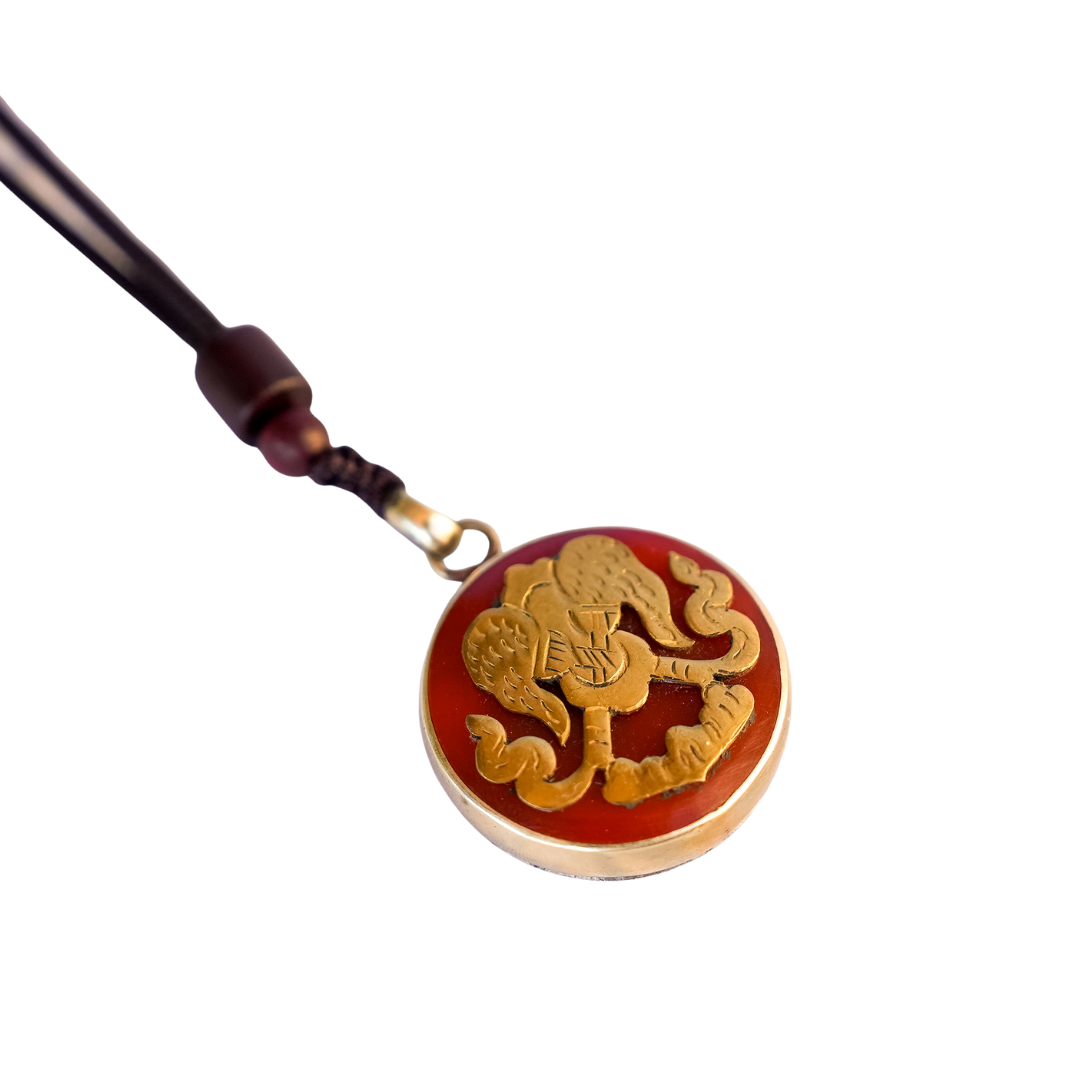 Gao necklace made by Laklema by nomad women in Amdo, Tibet. This Gao is empty for filling with ritual or blessed substances.
